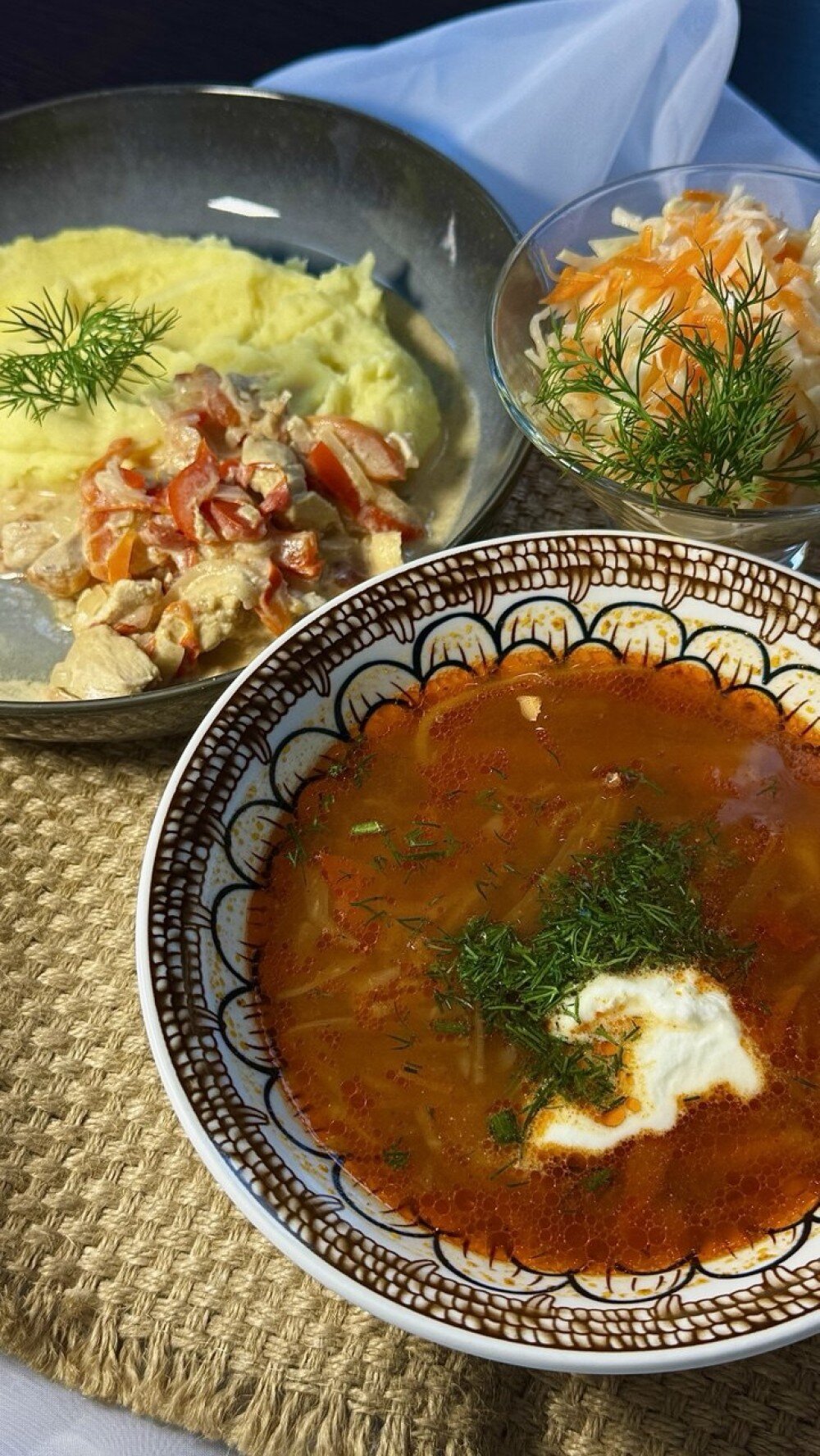 Салат Коул Слоу / Щи / Курочка фрикасе с картофельным пюре