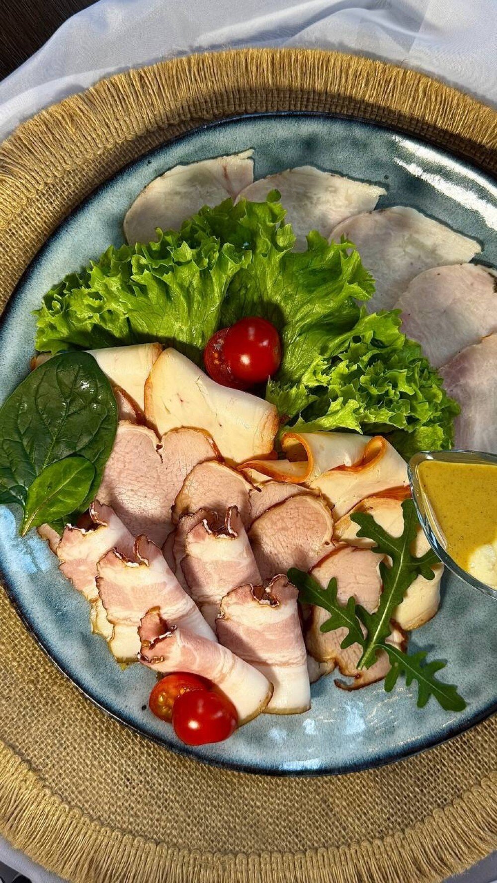 Грудинка, карбонат, буженина, рулет куриный, горчица, хрен