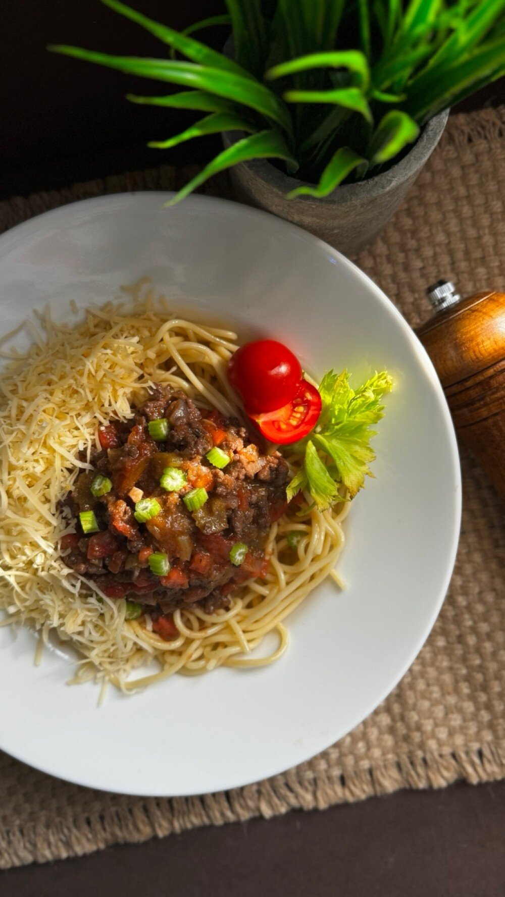 спагетти, соус болоньез, пармезан